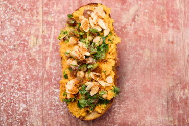 Orient-Stulle mit Karotten Lib El Kousa, Kichererbsen, Mandelsplitter & „Dattelpesto“