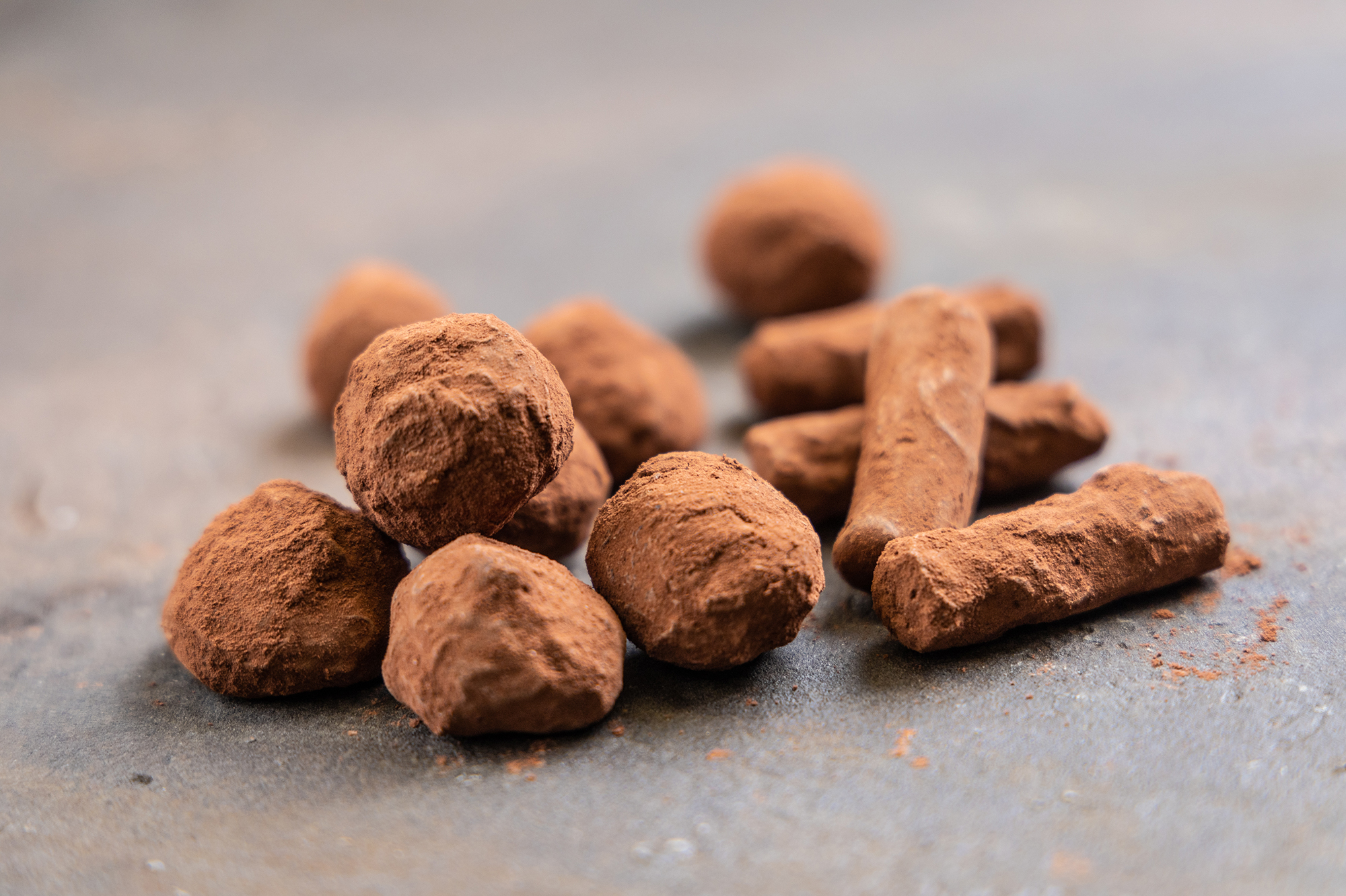 Trüffel sind die ursprünglichste Form von Pralinen und können eine runde oder längliche Form annehmen, die in Schokolade und/oder Kakaopulver getunkt wird. Im Gegensatz zu Formpralinen entstehen sie ohne Hohlkörper, direkt aus fester Ganache. Ihr rustikaler Look („belgischer Stil“) ist gewollt – kleine Unebenheiten zeigen echte Handarbeit.