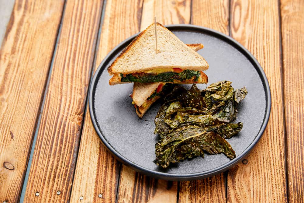 1 rote Zwiebel, geschält in Ringe schneiden und in einer heißen Pfanne, mit 2 EL Sesamöl anbraten. Nun 350 g Schwarzkohl , 1 EL geriebener Ingwer, 1 EL Tomatenmark mit in die Pfanne geben, kurz mitrösten und dann mit 100 g Orangensaft, 2 EL Sojasoße und 1 TL Ahornsirup ablöschen. Die Flüssigkeit verkochen lassen.